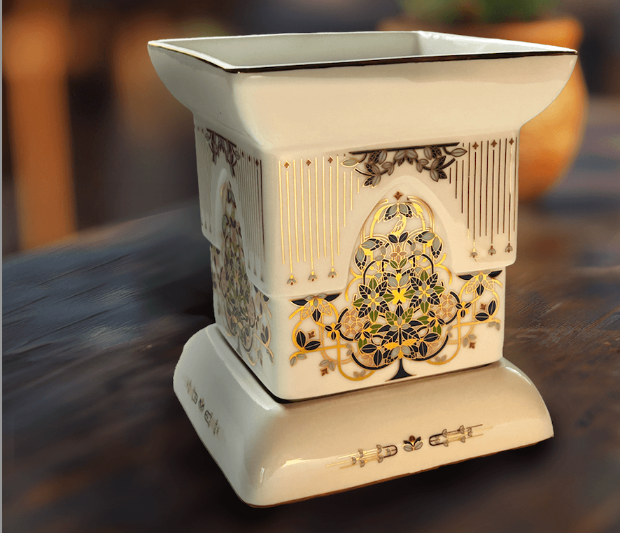 In many Indian homes, a beautiful tradition continues to this day; the worship of the Tulsi plant. As the first rays of the sun touch life on earth, people offer prayers, water and incense, to the venerable Tulsi that is usually nested inside a traditional planter. Our Aranya Tulsi Vrindavan, an exquisite porcelain tulsi planter pays tribute to this age-old tradition. Accentuated in gold, our Aranya Tulsi Vrindavan is a reminder of the importance of hope and faith, as it blesses every living space with positive energy.