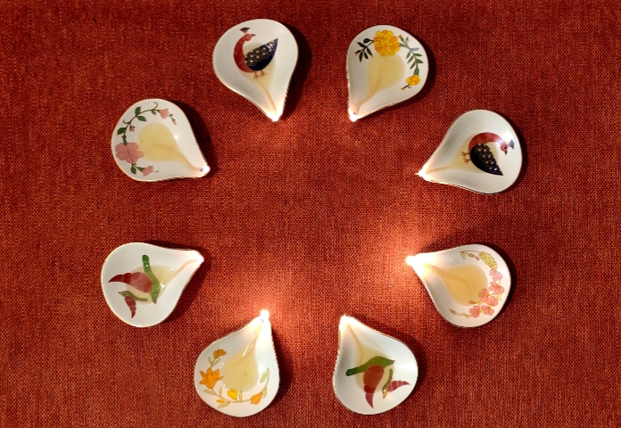 - Take care while lighting the diyas; do not light directly on or near an inflammable surface, place away from the direction of wind and any flowy drapery, and do not leave the flame unattended.