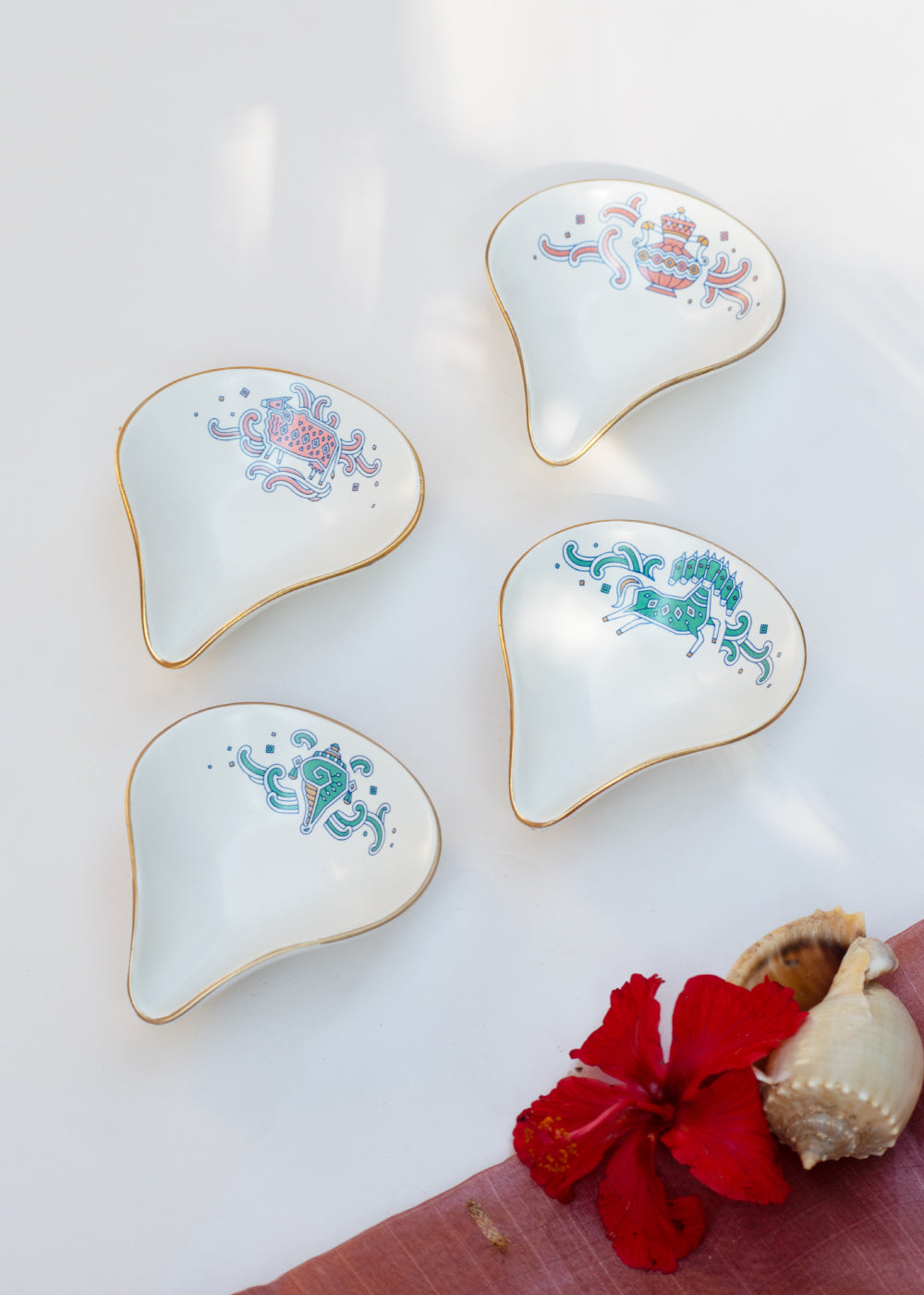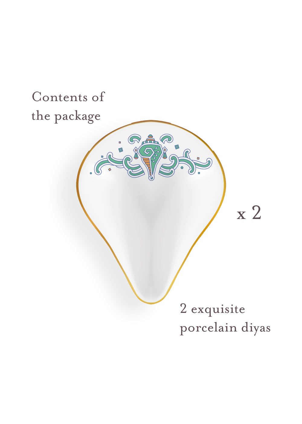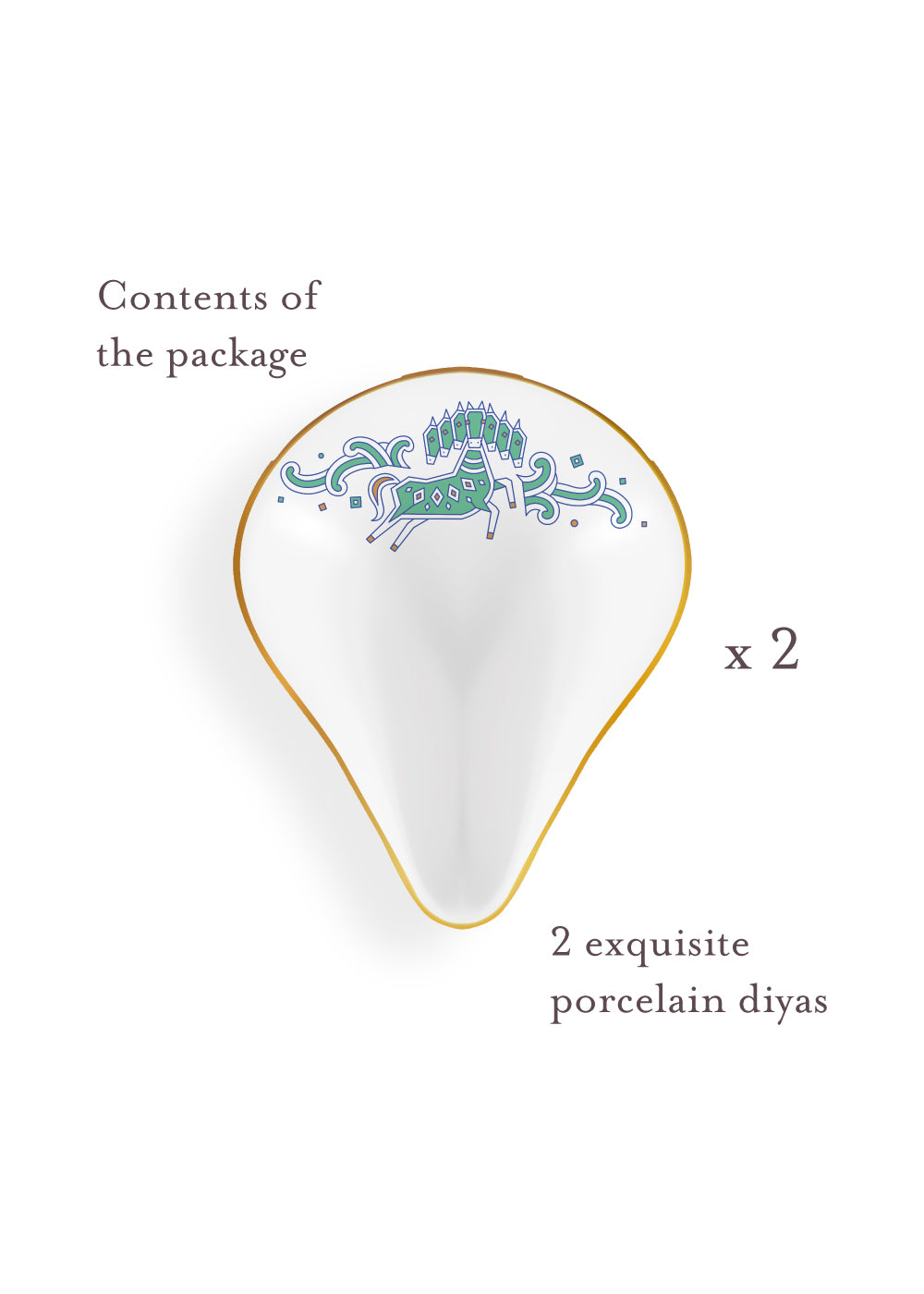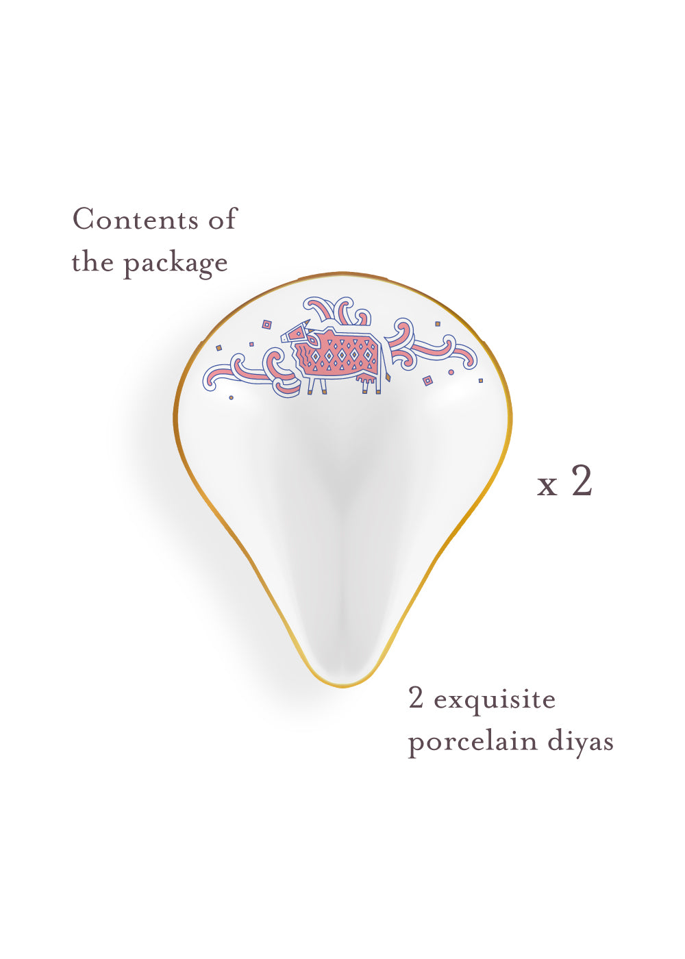 An ode to the great churning of the ocean from Indian mythology - the fabled Samudra Manthan, Neyadeep Manthan is a special edit by Atah and Locopopo, comprising two alluring pairs of porcelain diyas. Delicately crafted, with tranquil motifs that take inspiration from the ratnas or the marvellous treasures that emerged from the churning, Manthan celebrates a deep sense of collective culture and heritage, and is a re-imagination of the beginning of all things wonderful! Each diya is accentuated with a sublime gold-plated hem that elicits an air of subtle elegance.