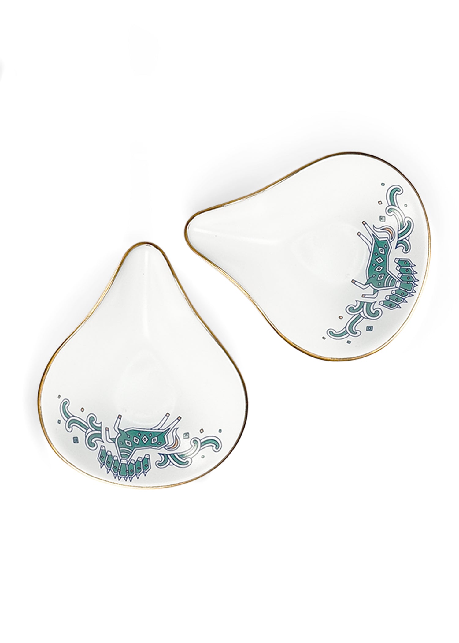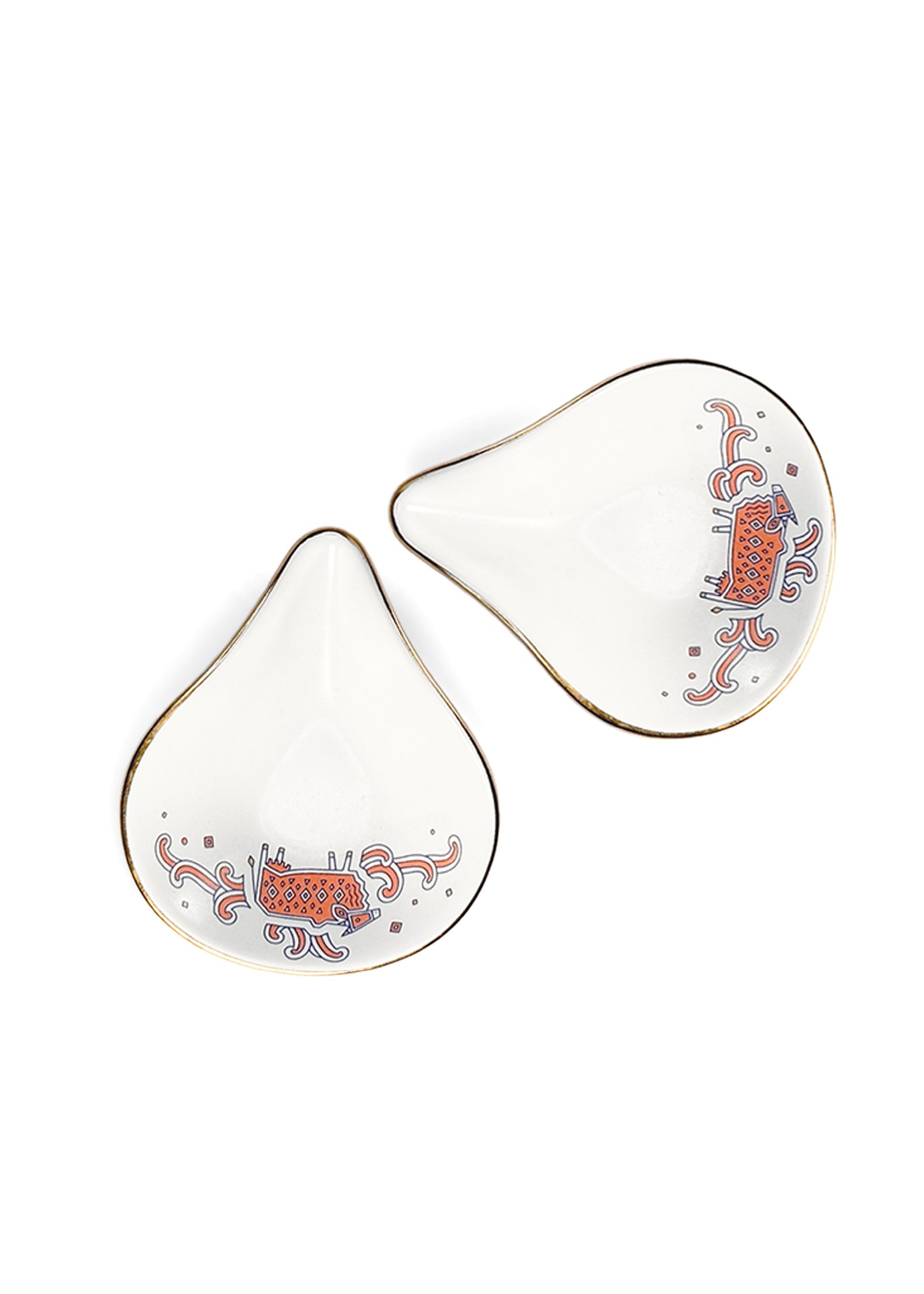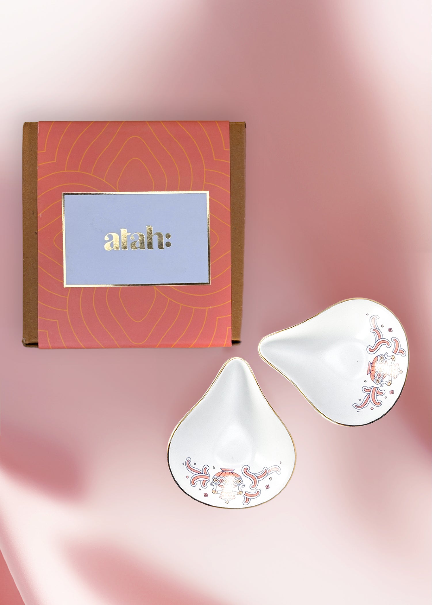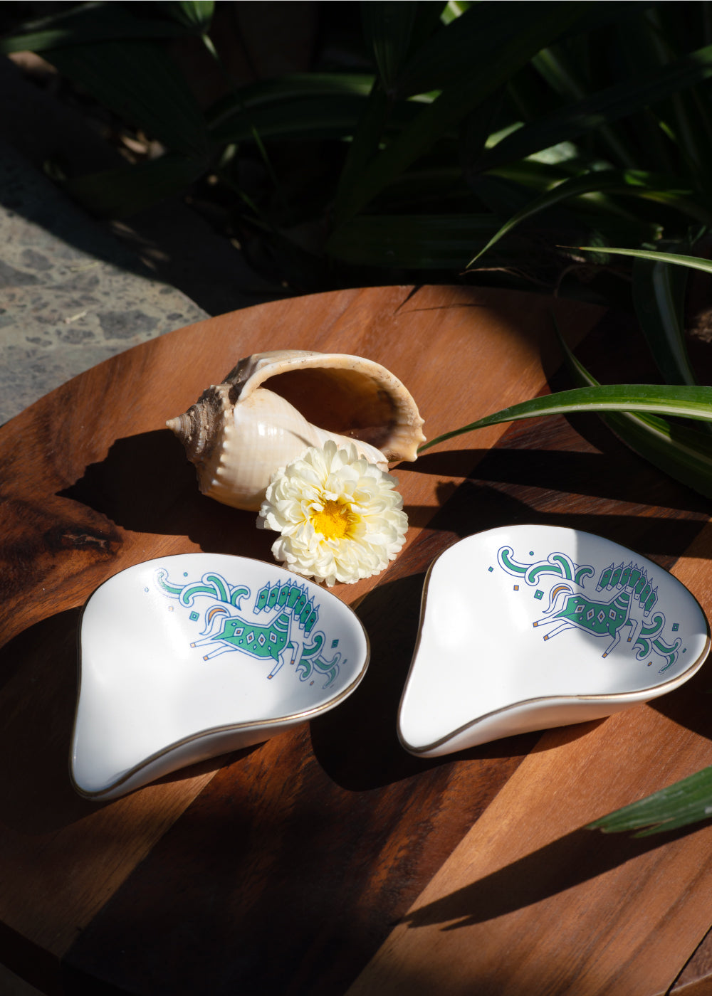 An ode to the great churning of the ocean from Indian mythology - the fabled Samudra Manthan, Neyadeep Manthan is a special edit by Atah and Locopopo, comprising two alluring pairs of porcelain diyas. Delicately crafted, with tranquil motifs that take inspiration from the ratnas or the marvellous treasures that emerged from the churning, Manthan celebrates a deep sense of collective culture and heritage, and is a re-imagination of the beginning of all things wonderful! Each diya is accentuated with a sublime gold-plated hem that elicits an air of subtle elegance.