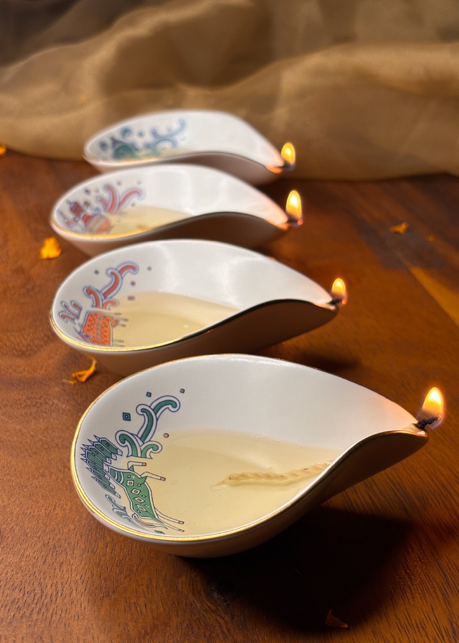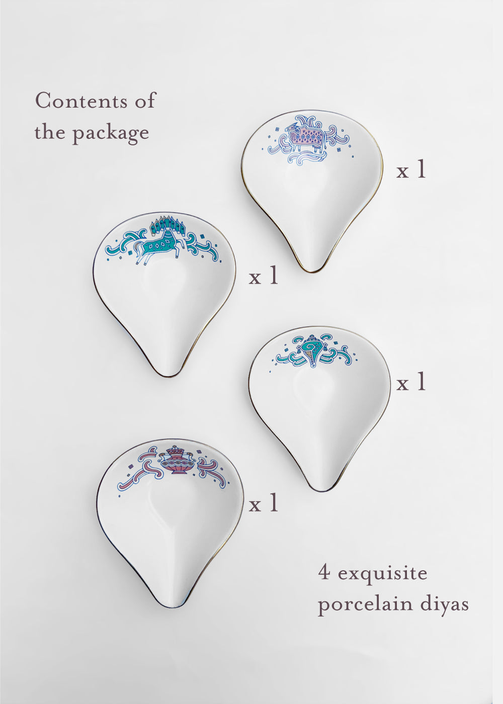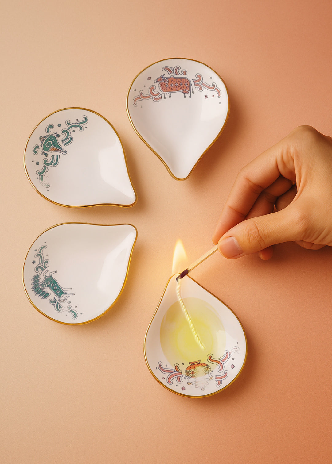 For the many festive days in the calendar and for the many others you wish to make festive, Neyadeep is just what you need. Bedecked with traditional Indian motifs and a delicate hem of gold, these celebratory finely-crafted porcelain diyas take inspiration from India’s rich visual vocabulary. Light up your living space or use them to accentuate your coffee table; gloriously elegant either way!